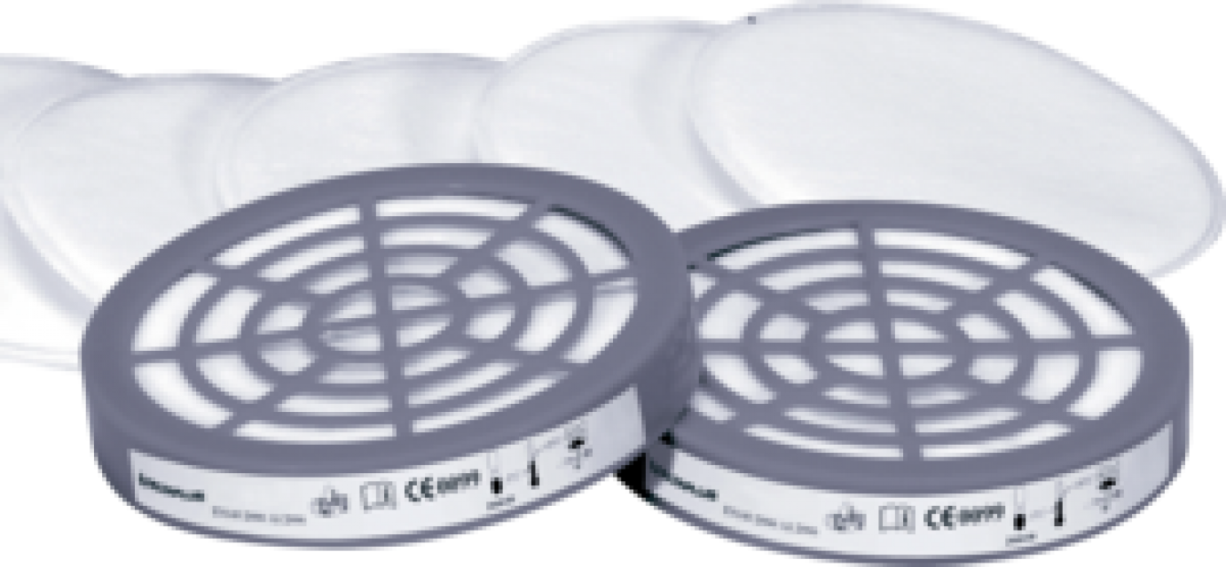 Kit met 6 P2-voorfilters en 2 adapters voor halfgelaatsmaskers uit de JUPITER M6000-serie. Voor gebruik met M6000E-filters.